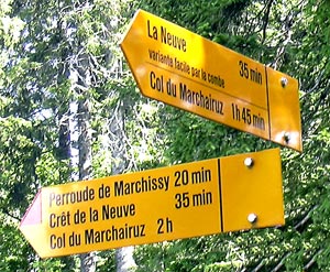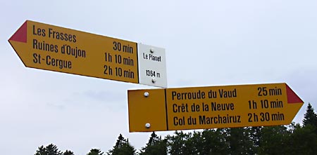 si on passe par le Crêt de la Neuve, le Marchairuz est à 2h. mais à 1h 45 par La Neuve, on choisira le plus directe! |
