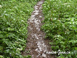 la grèle sur le sentier après l'orage de la veille |