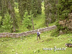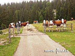 après le Grand Cunay on dessend un pâturage, nous traversons la route qui mène au chalet des Combes et ensuite on se dirige sur la Pierre à Coutiau, 1609m et le prochain chalet sera les Servans qui précède le chalet de Yens après lequel démarre la montée finale sur le Mt Tendre |