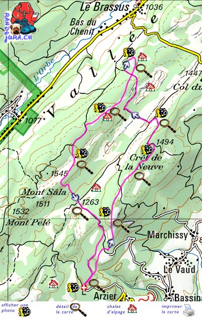 Départ depuis les Ruines d'Oujon, direction le Planet, la Perroude Vaud, de Marchissy, le Crêt de la Neuve les Amburnex et ensuite le Chalet de la Croix avec un retour en passant par le chalet à Roch Dessus, la Place d'arme et la Bassine avant de rejoindre les Frasses et voici 9h30 de marche.... pour 26 km