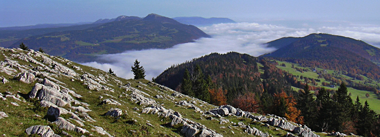 on pourrait apercevoir le lac de Joux au milieu