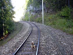 on passe sous la voie du Chemin de fer Nyon St Cergue La Cure