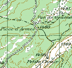 | vue de Genève 1495m, en fait il faudrait élaguer pour voir la ville de Calvin |