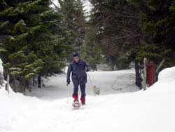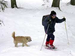| On profite de la visite de Jean pour lui faire découvrir les environs d'Arzier et en raquettes |