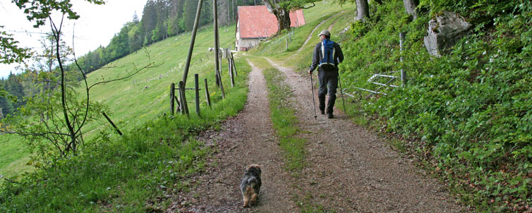 Après avoir longé les crêtes, nous sommes redescendu le sentier qui démarre vers le Puit Jacob et qui rejoint les Naz, c'est une jolie descente qui longe une paroi de rocher parfois imposantes.